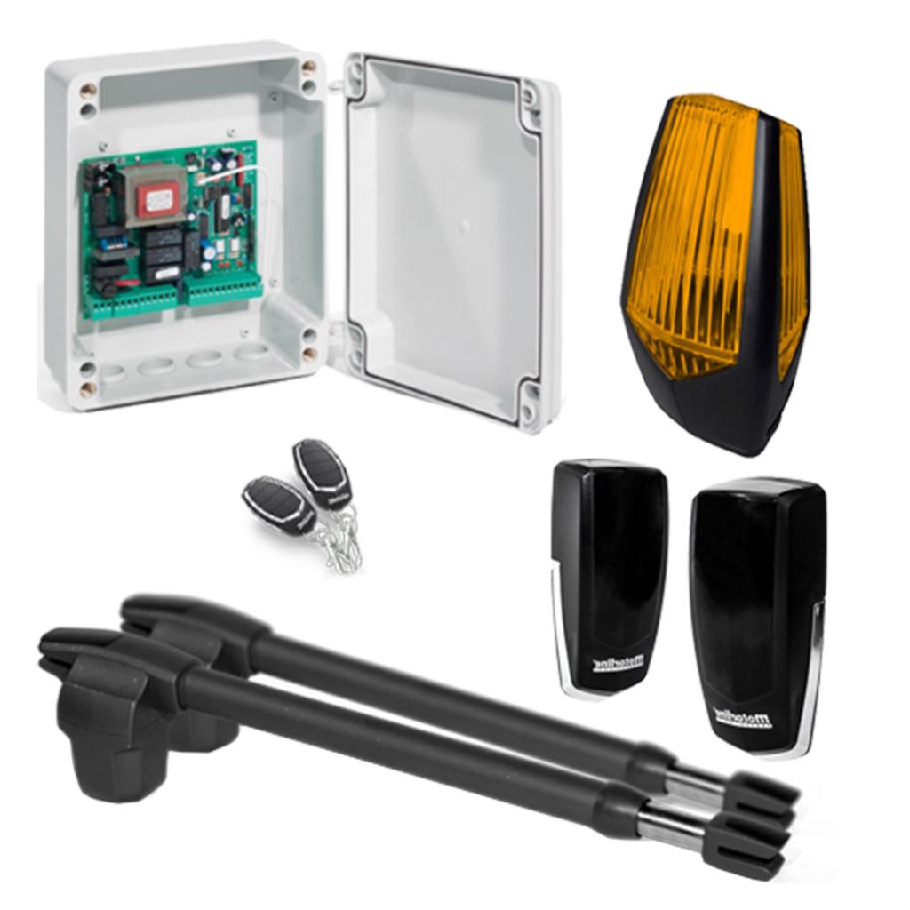 Kitul este compatibil cu accesorii precum fotocelule, lampă de semnalizare, telecomenzi și sisteme de control acces, oferind flexibilitate în integrarea cu infrastructura existentă. Este potrivit pentru porți batante cu 1 sau 2 canate, instalate în zone rezidențiale sau comerciale cu trafic moderat.