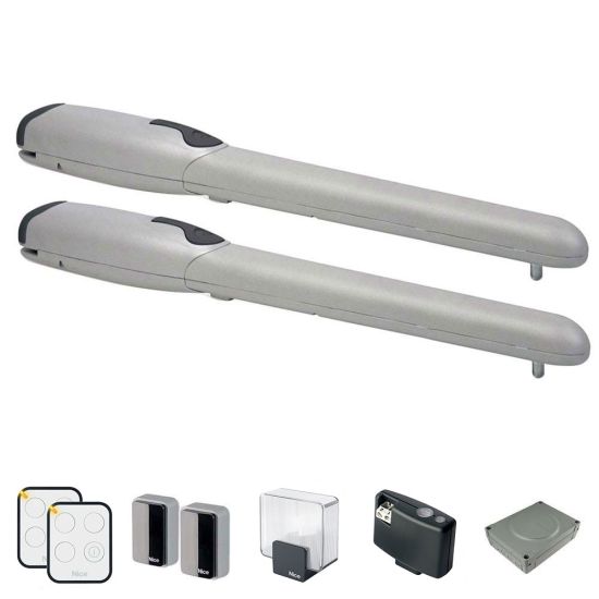 Nice WINGO5BDKCE este un kit de automatizare pentru porţi batante cu canaturi de până la 3.5 m si 500 kg.