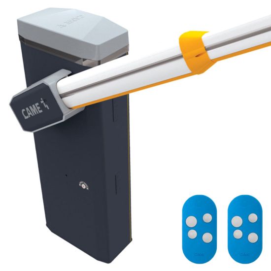Came Gard GT8 model 803BB-0180 bariera automata electrica sub forma de kit compus din corp bariera, brat bariera telescopic 4220 mm + 4340 mm, autocolante reflexive, receptor, 2 telecomenzi.