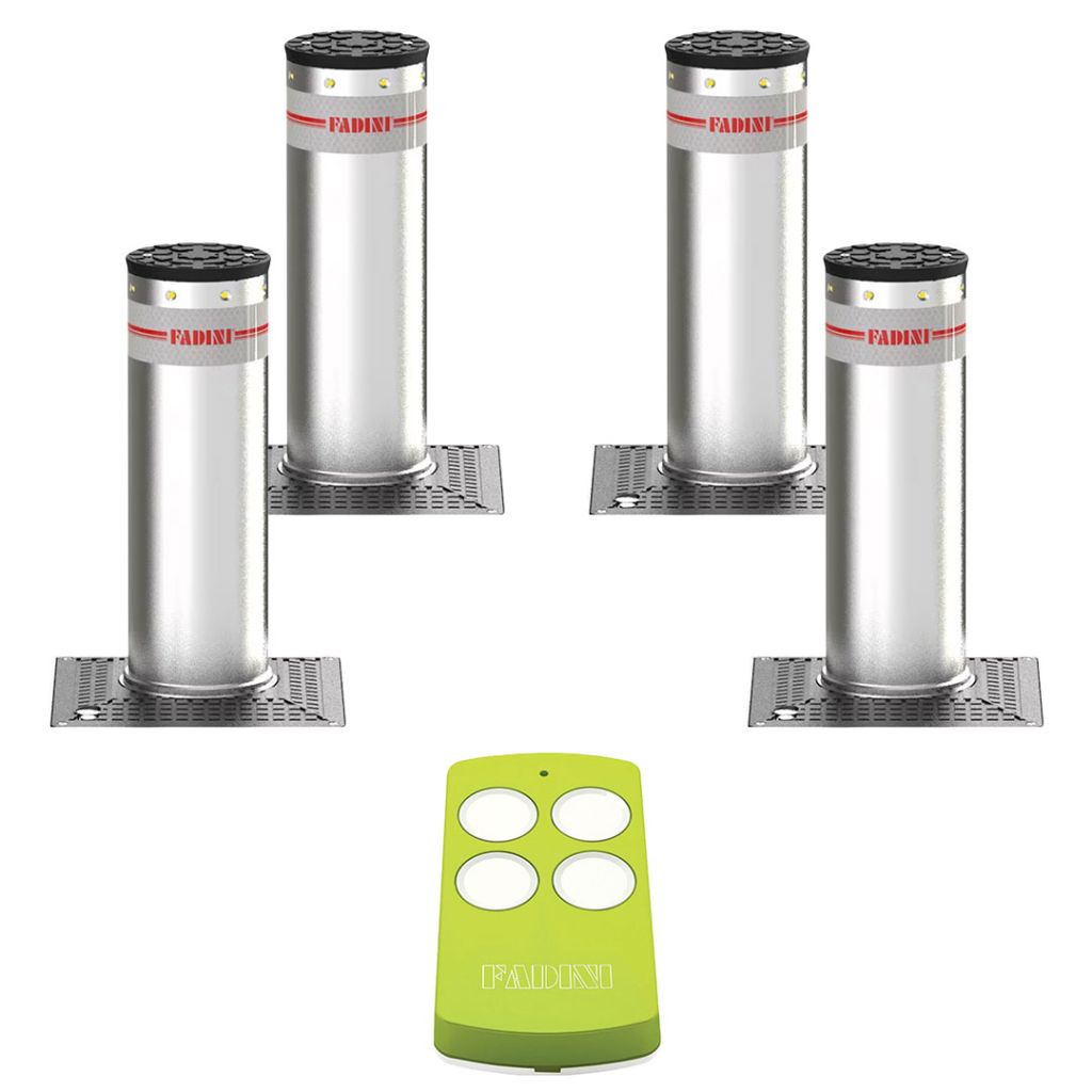 Fadini Vigilo 2263 model 2277L sistem kit-ul este format din 4 piloni retractabili, din inox periat, cu LED-uri, stalpii sunt echipati din fabrica cu 10 metri de cablu tehnic, pentru alimentare si comenzi.