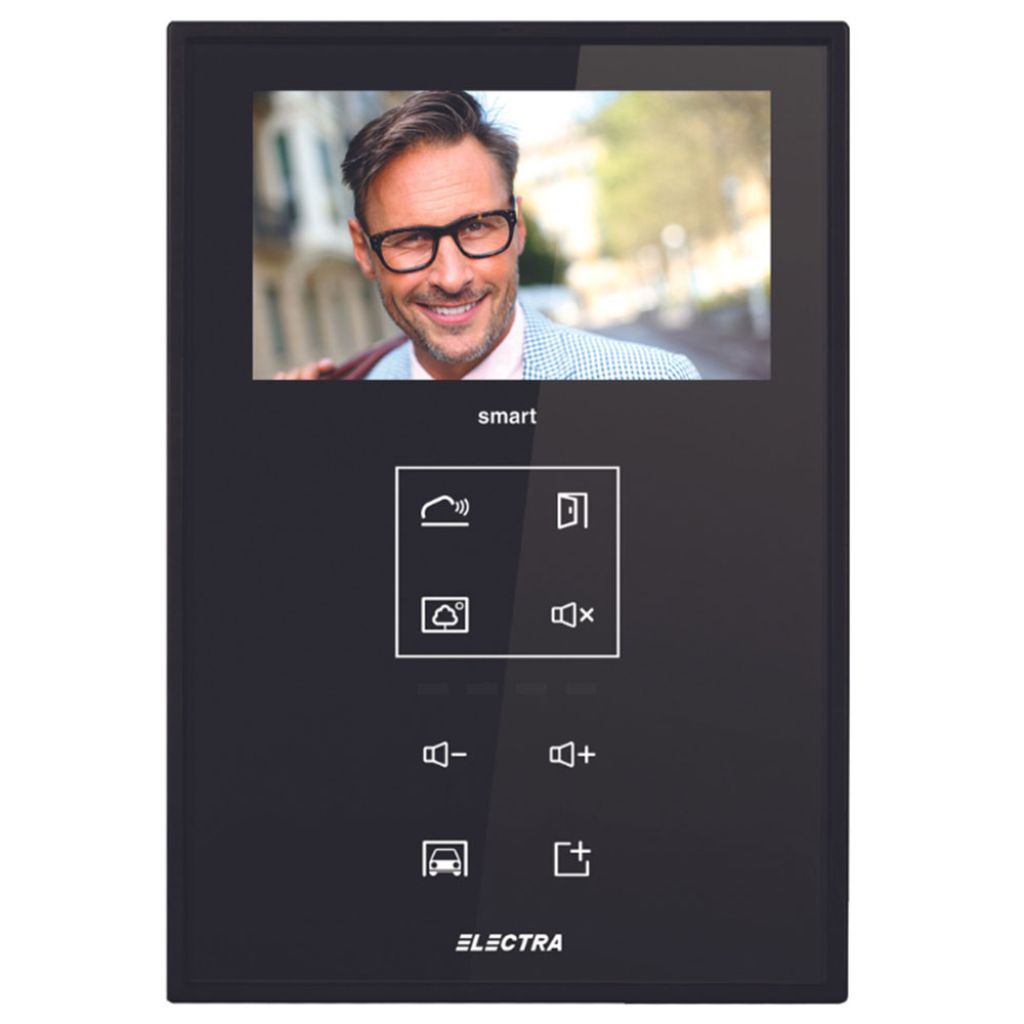 Kit videointerfon Electra Touch Line Smart, panou exterior incastrat pentru 1 familie, panou interior 4.3 inch, negru, cablare 4 fire.