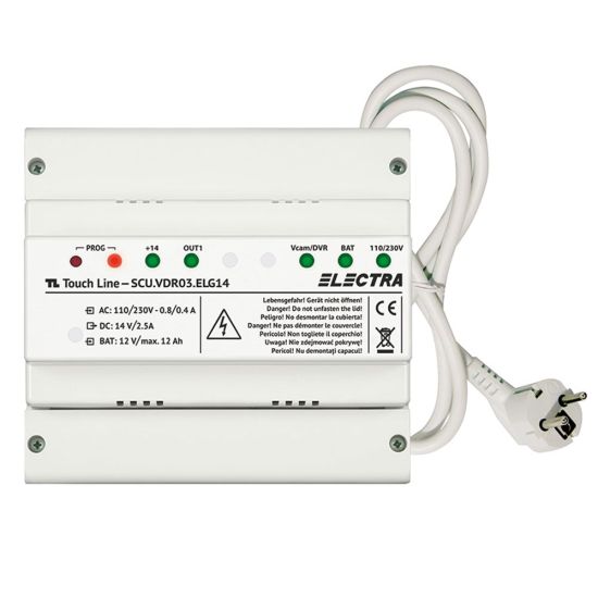 Unitate centrala de alimentare cu 1 iesire, pentru instalatii de 1 familie si blocuri, carcasa ABS ignifugat/PA66 - Gri deschis, prevazuta cu cablu si stecher, montaj pe sină DIN/pe suprafata, 130 x 141 x 73 mm;