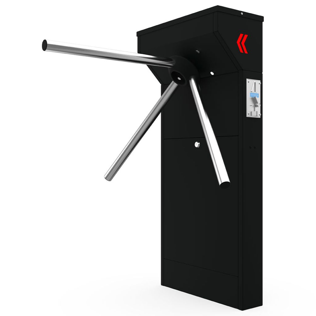Turnichetul tripod Atlas Cerberus CRB 100CJR din oțel vopsit negru, cu brațe căzătoare și jetonieră, semi-automat este o soluție profesională pentru controlul accesului pietonal cu taxare sau validare prin jetoane, concepută pentru spații unde este necesară gestionarea eficientă a fluxului de persoane, siguranță ridicată și funcționare fiabilă. Sistemul este ideal pentru centre sportive, piscine, săli de fitness, muzee, parcuri de agrement, evenimente sau zone cu acces condiționat.